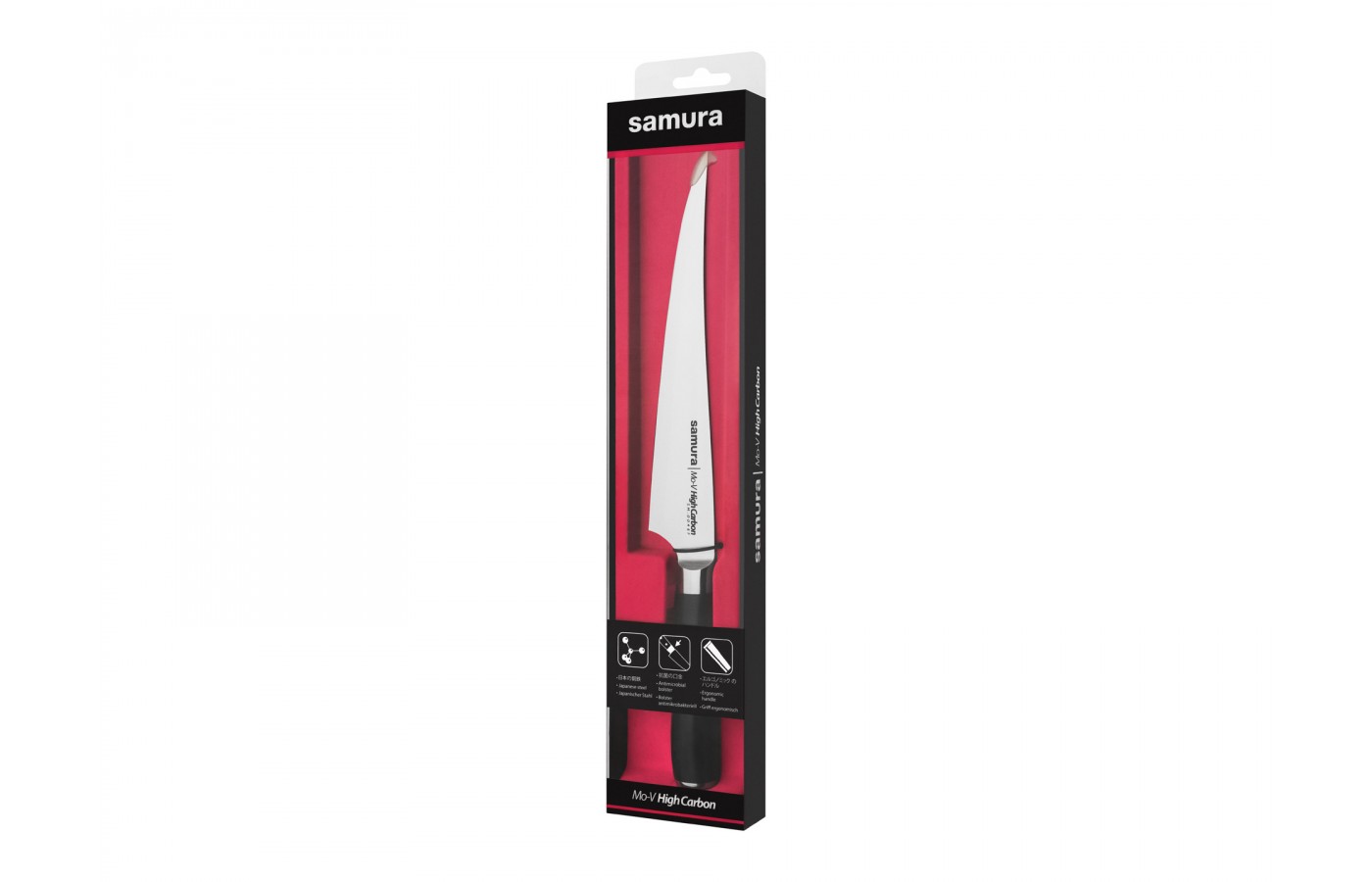 В нашем магазине Вы можете купить хороший филейный нож FISHERMAN Samura Mo-V – профессиональный инструмент, предназначенный для отделения мякоти от костей и удаления шкуры (например, свиной).