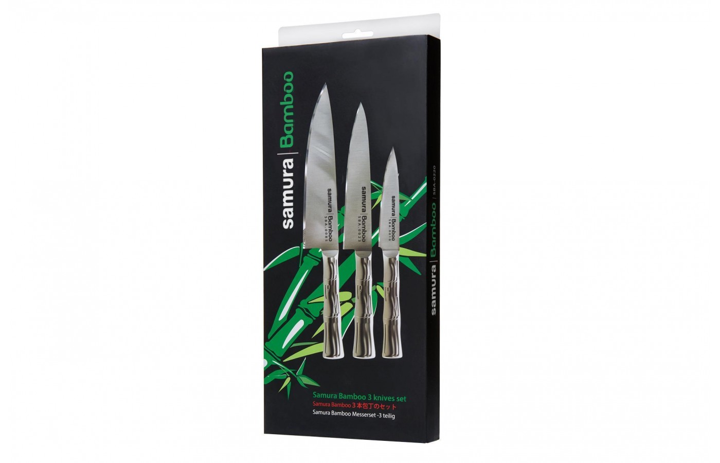 Набор из 3-х ножей Samura Bamboo овощной, универсальный 125 мм, шеф