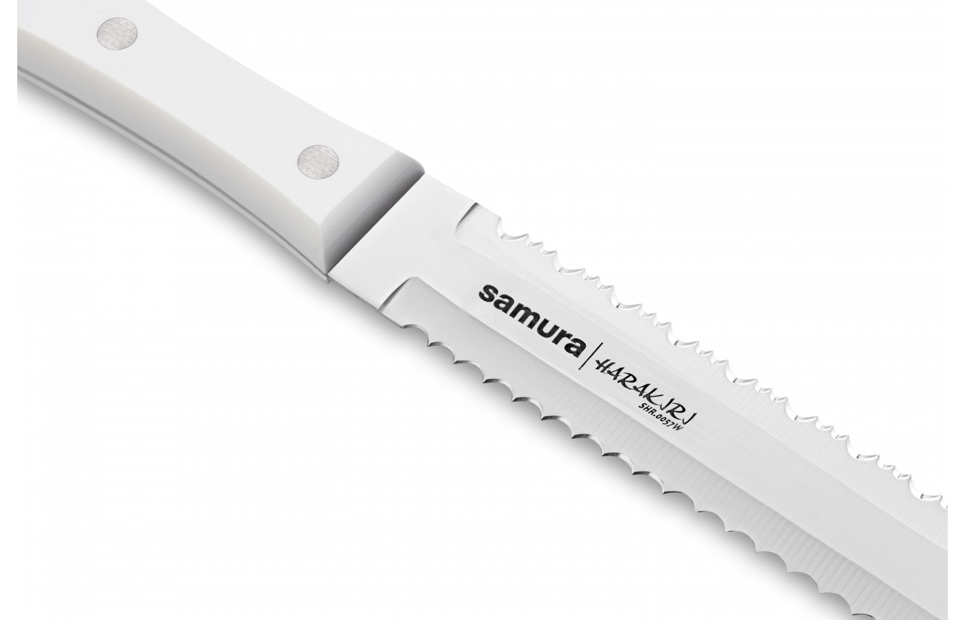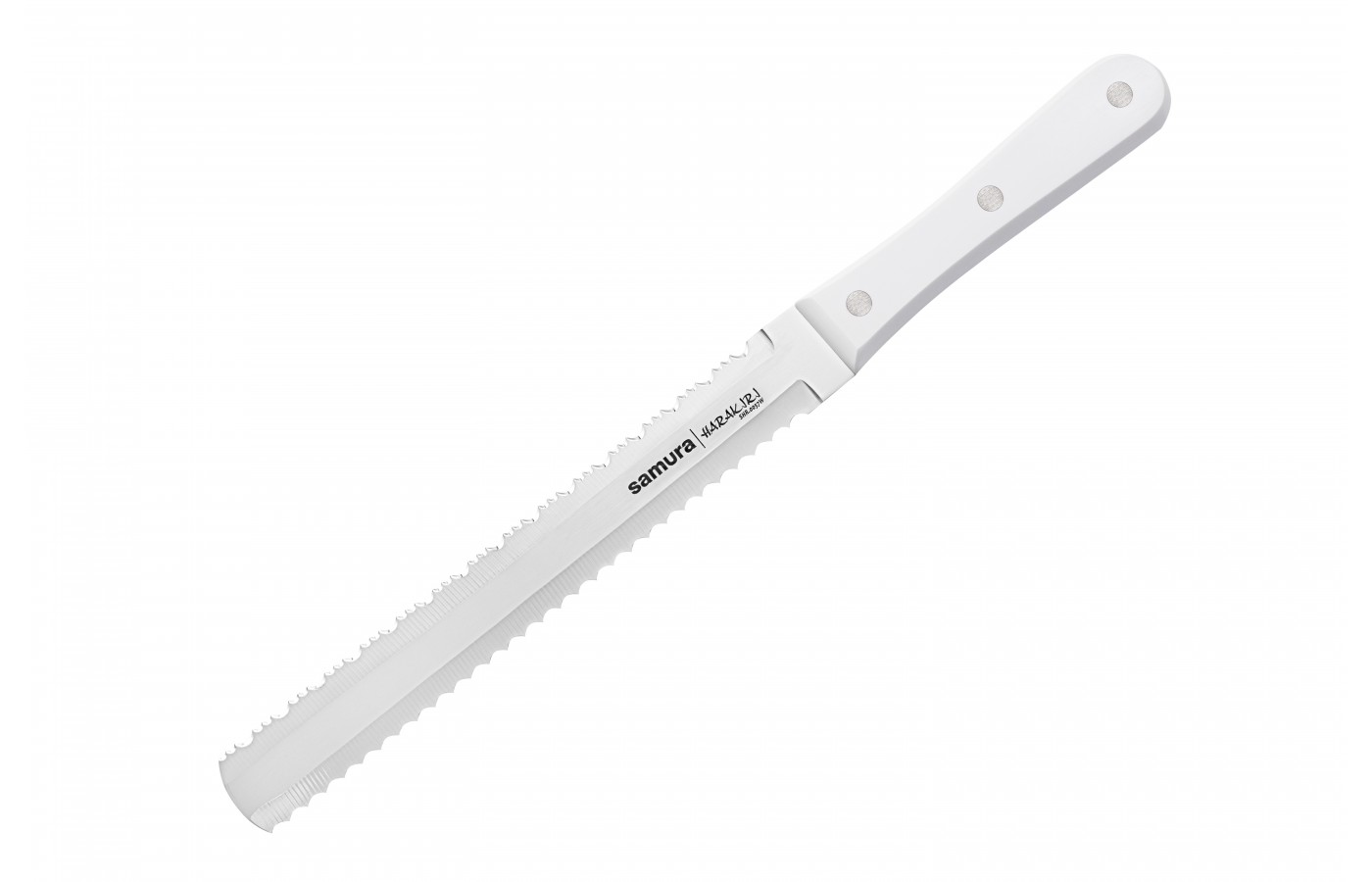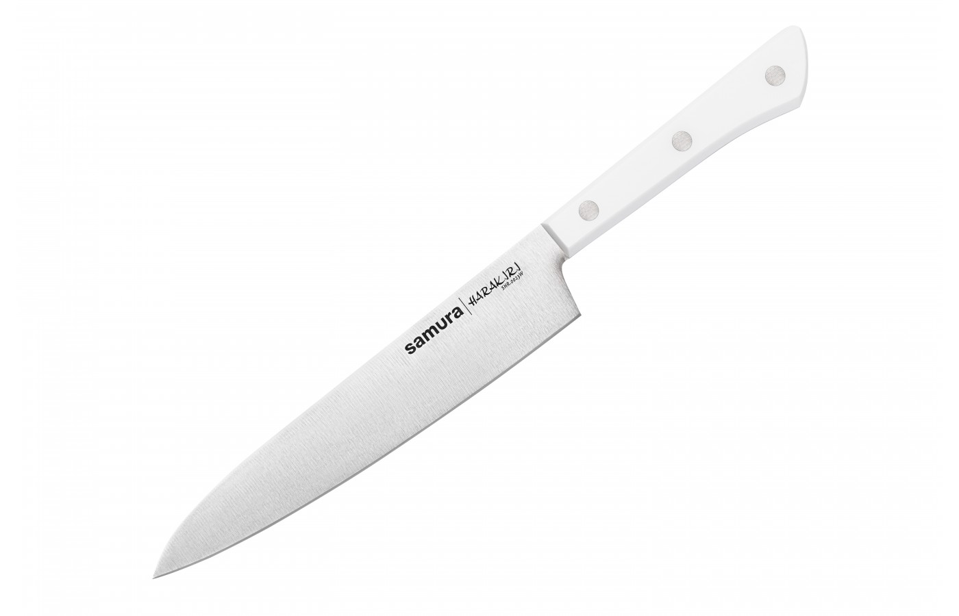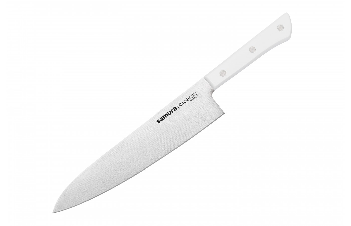Samura Harakiri — набор удобных и функциональных ножей по доступной цене. Применяется массовый тип производства и недорогие, но прочные и долговечные материалы, поэтому стоимость – самая низкая в ассортименте клинков бренда. Лезвия изготовлены из коррозиестойкой стали AUS-8 с добавлением ванадия, никеля, марганца, отличаются повышенной износостойкостью и редко требуют заточки. Лезвие закалено до твердости 58 HRC и доведено до бритвенной остроты на японских водных камнях.