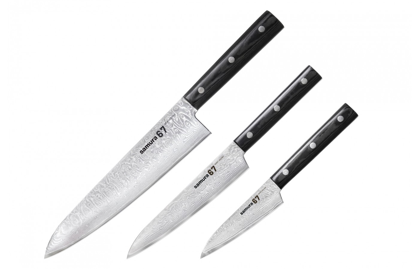 Набор из 3-х ножей SAMURA 67 DAMASCUS SD67-0220 овощной, универсальный, шеф