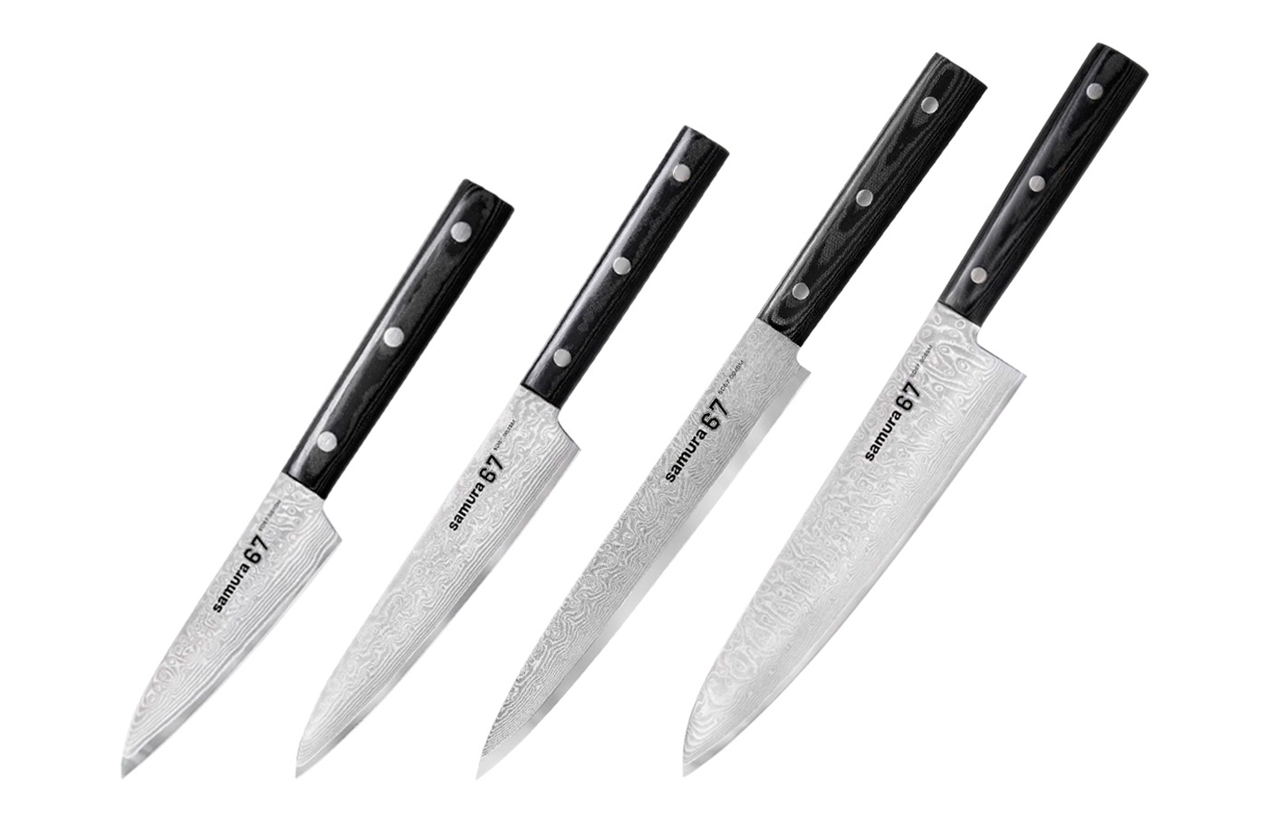 Набор из 4-х ножей SAMURA 67 DAMASCUS овощной, универсальный, слайсер, шеф