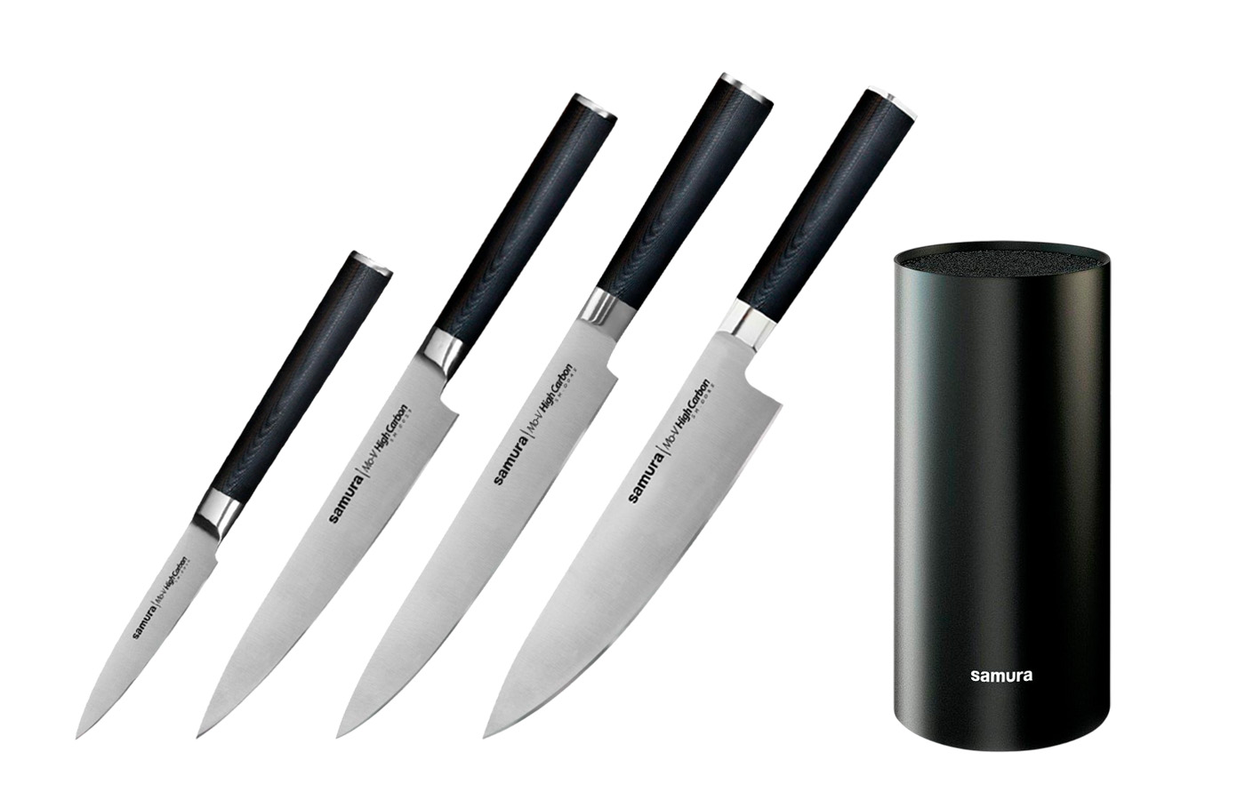 Набор из 4-х ножей Samura Mo-V Овощной, Универсальный 150 мм, Для нарезки, Шеф и подставки