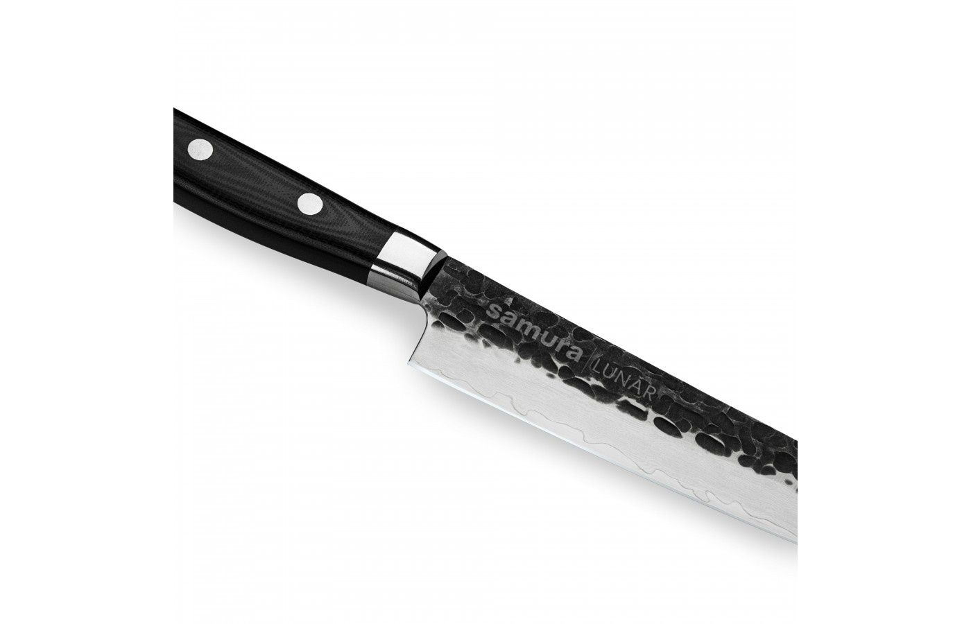 Ножи в наборе Samura Pro S Lunar изготовлены из высококачественной стали VG-10, что обеспечивает долговечность и отличные режущие свойства. Лезвие каждого ножа имеет остриё, заточенное до бритвенной остроты, что гарантирует отличную производительность даже при интенсивном использовании. Рукояти выполнены из прочного стеклотекстолита G-10, который не только удобен в использовании, но и обладает высокой устойчивостью к износу.