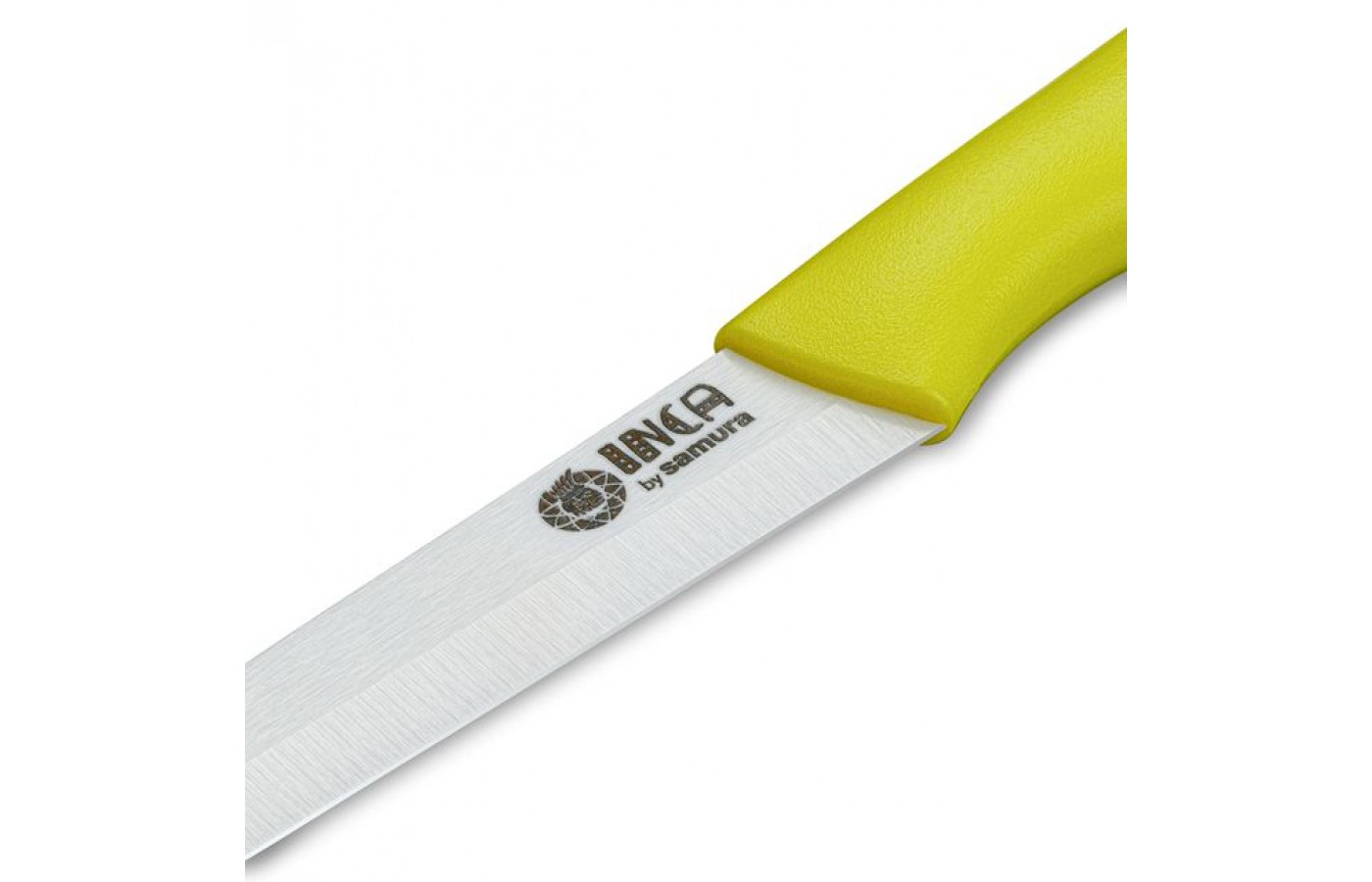 Керамический фрутоножик Samura Inca производится из высокотехнологичного, современного и полностью безопасного материала – диоксида циркония, который по показателям твердости аналогичен алмазу. Заточка изделия осуществляется крайне редко за счет высокой прочности материала.