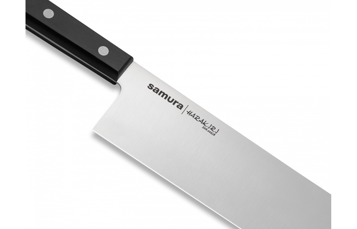 Японский нож накири из коллекции Samura Harakiri — функциональный и удобный, при этом имеет самую низкую цену в ассортименте продукции бренда. Это оправдано применением недорогих, но качественных материалов и массового типа производства. Изделия имеют длительный срок службы, прочные и с высокой работоспособностью. Нож Самура сделан из японской однослойной стали марки AUS-8, устойчивой к коррозии и умеренно вязкой, благодаря добавлению в сплав молибдена, ванадия, марганца и других компонентов. Лезвие закалено до твердости 58 HRC и заточено на водных камнях. Режущая кромка долгое время остается острой, а при необходимости ее несложно наточить в домашних условиях. Клинок устойчив к нагрузкам, воздействию влаги, бытовой химии и высоких температур.