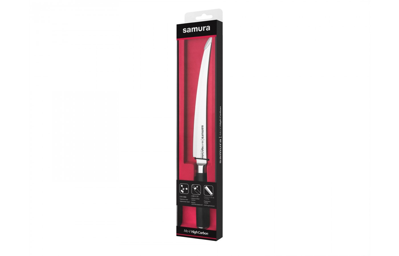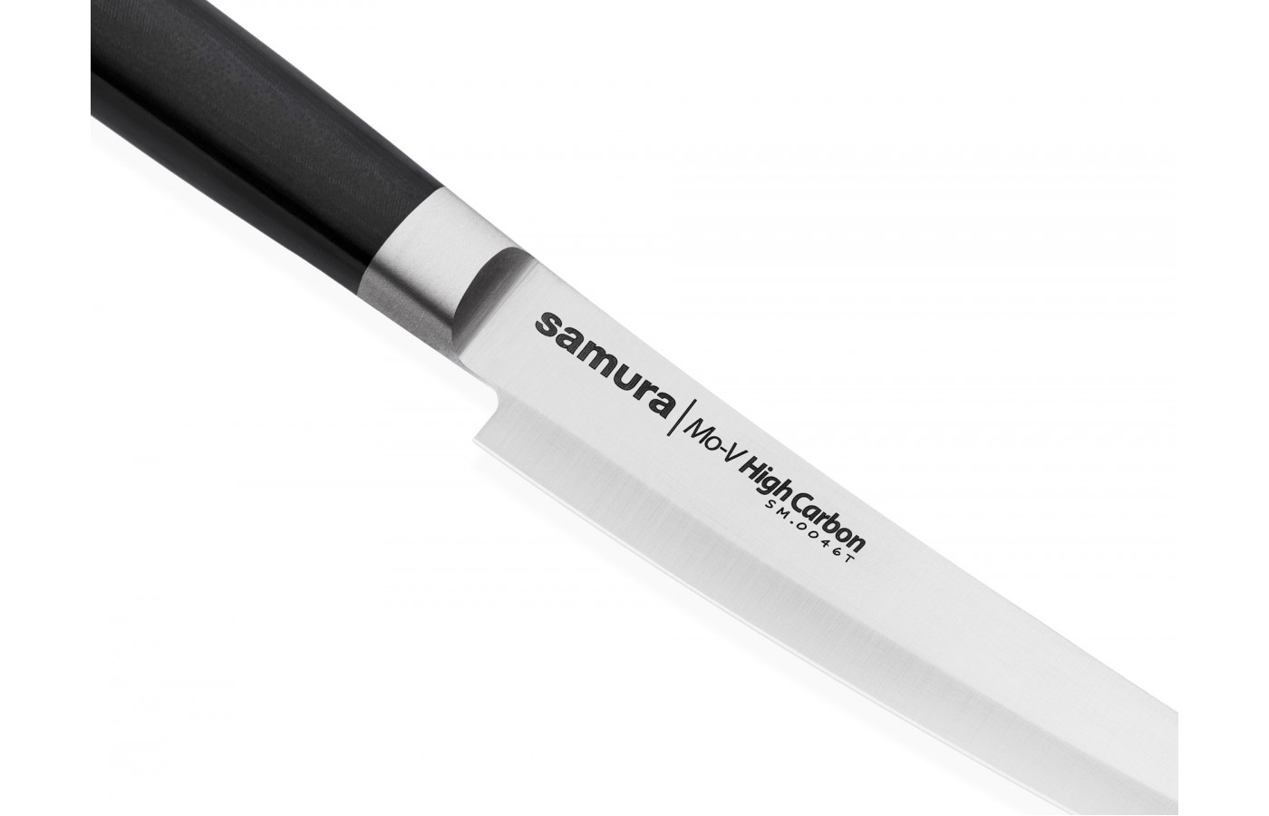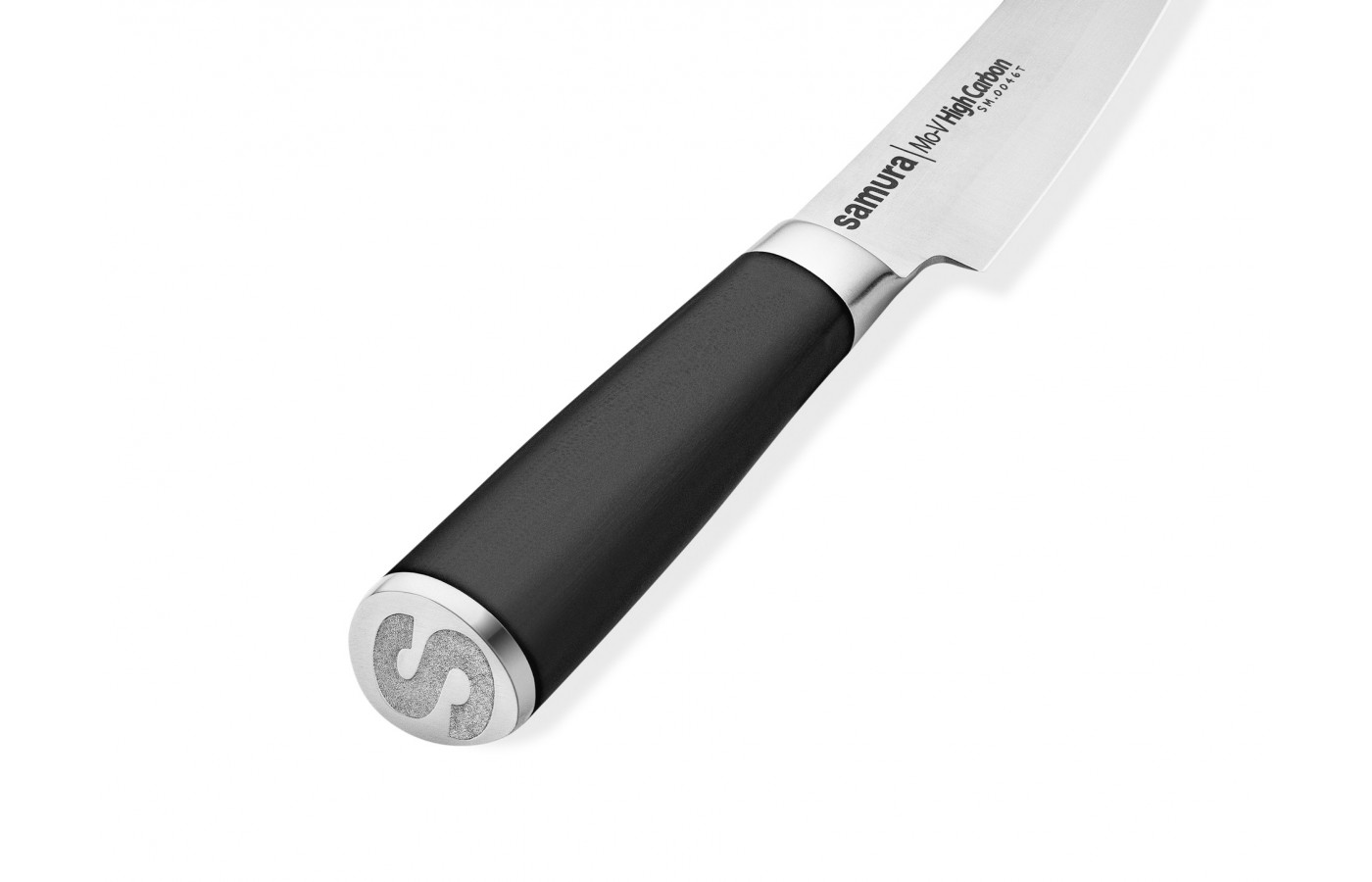 Нож-слайсер Самура Mo-V — образец оптимального соотношения цены и качества изделия. Имеет стильный внешний вид, гигиеничен, долговечен и неприхотлив в уходе. Поставляется в фирменной упаковке бренда и готов к работе сразу же после извлечения из коробки.
