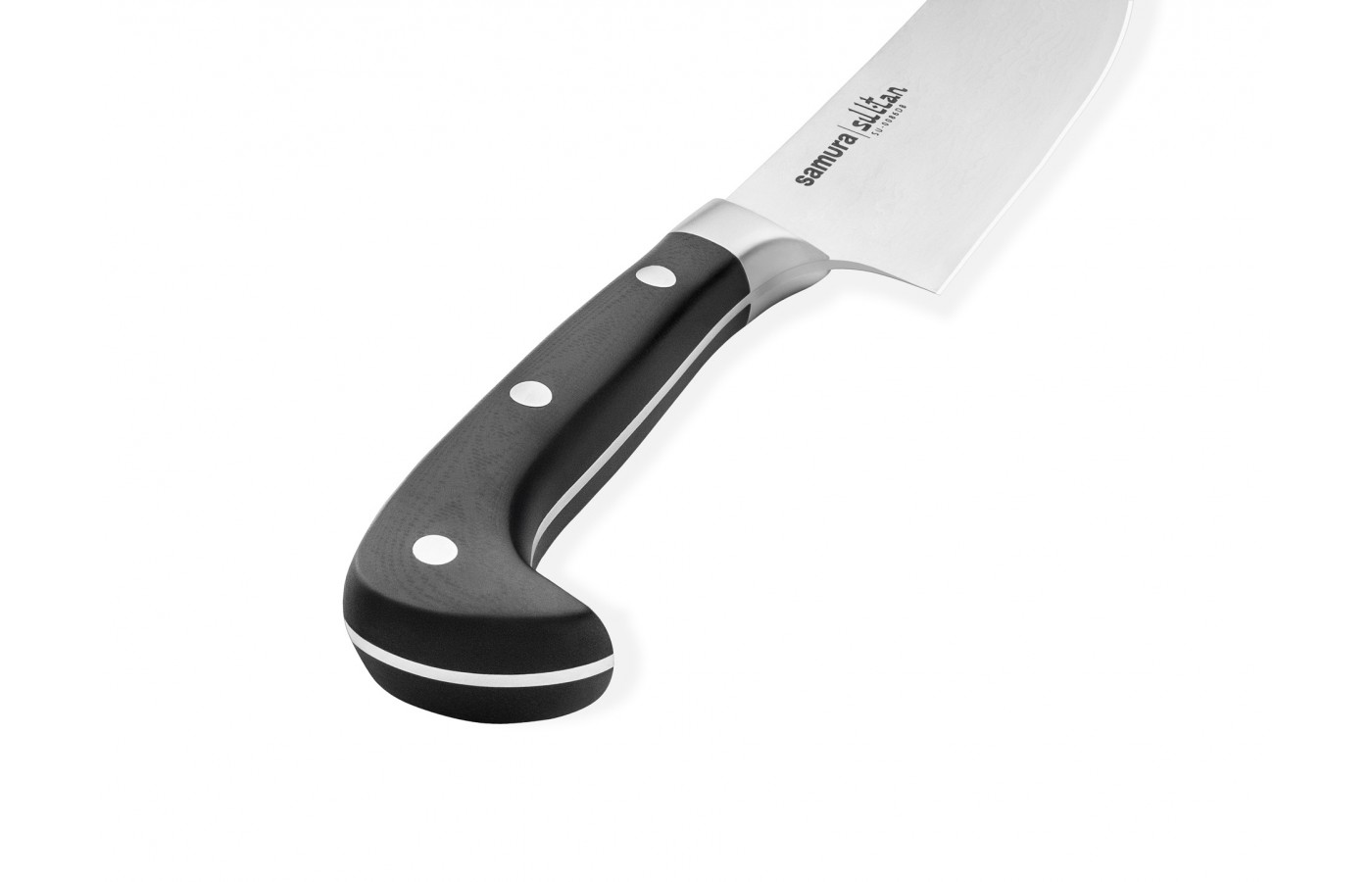 Идеально подходит для работы с мясом, разделки туш, кролика, птицы и рыбы. В современной интерпретации Пчак – это кухонный нож среднего размера с длиной лезвия 159 мм и двусторонней заточкой. Широкая пята в основание клинка не даст соскользнуть пальцам под режущую кромку ножа.