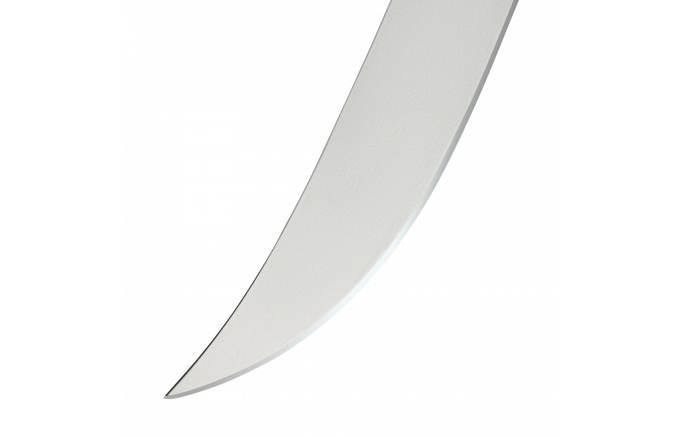 Кухонный нож для нарезки Sultan Pro, который иногда ещё называют слайсером, или гастрономическим ножом, отличается довольно длинным и узким лезвием. Его геометрия оптимальна для филигранной нарезки различных продуктов. С помощью слайсера Samura Sultan Pro Вы без проблем разделаете балык, колбасу, сыр, мясо и другие деликатесы на порционные кусочки.