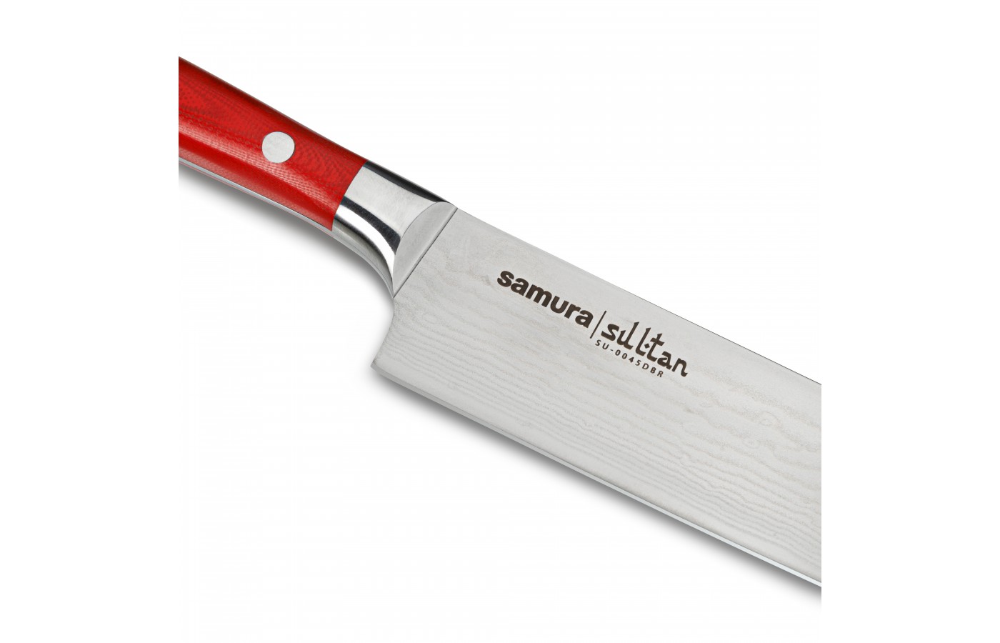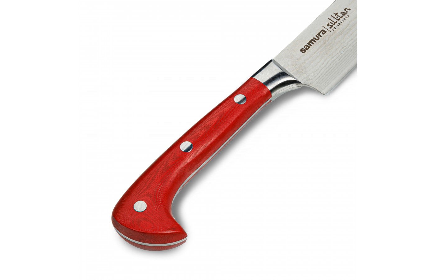 У ножа Samura SULTAN для нарезки, 210 мм – очень удобная и эргономичная рукоять, которая повторяет изгибы ладони. Пальцы обхватывают рукоять Пчака и упираются кончиками в ладонь. Такой кухонный нож весьма удобен при нарезке овощей и мяса - кисть меньше устает, да и сам хват становится крепче. При случайном резком движении, широкая пята в основании клинка, заменяющая упор, не дает соскользнуть пальцам под режущую кромку ножа.
