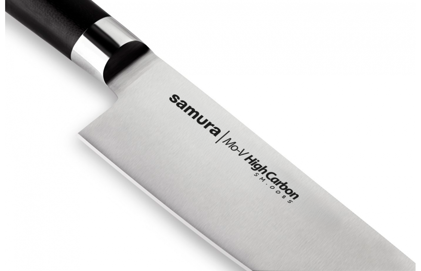 Шеф-нож Самура Mo-V — подходящий вариант для тех, кто ценит простоту и функциональность в повседневной готовке. Стильный дизайн, неприхотливость в уходе и длительный срок службы без потери первоначального качества реза — вот основные преимущества этого кухонного ножа. Продается в красивой фирменной коробке и полностью готов к применению.